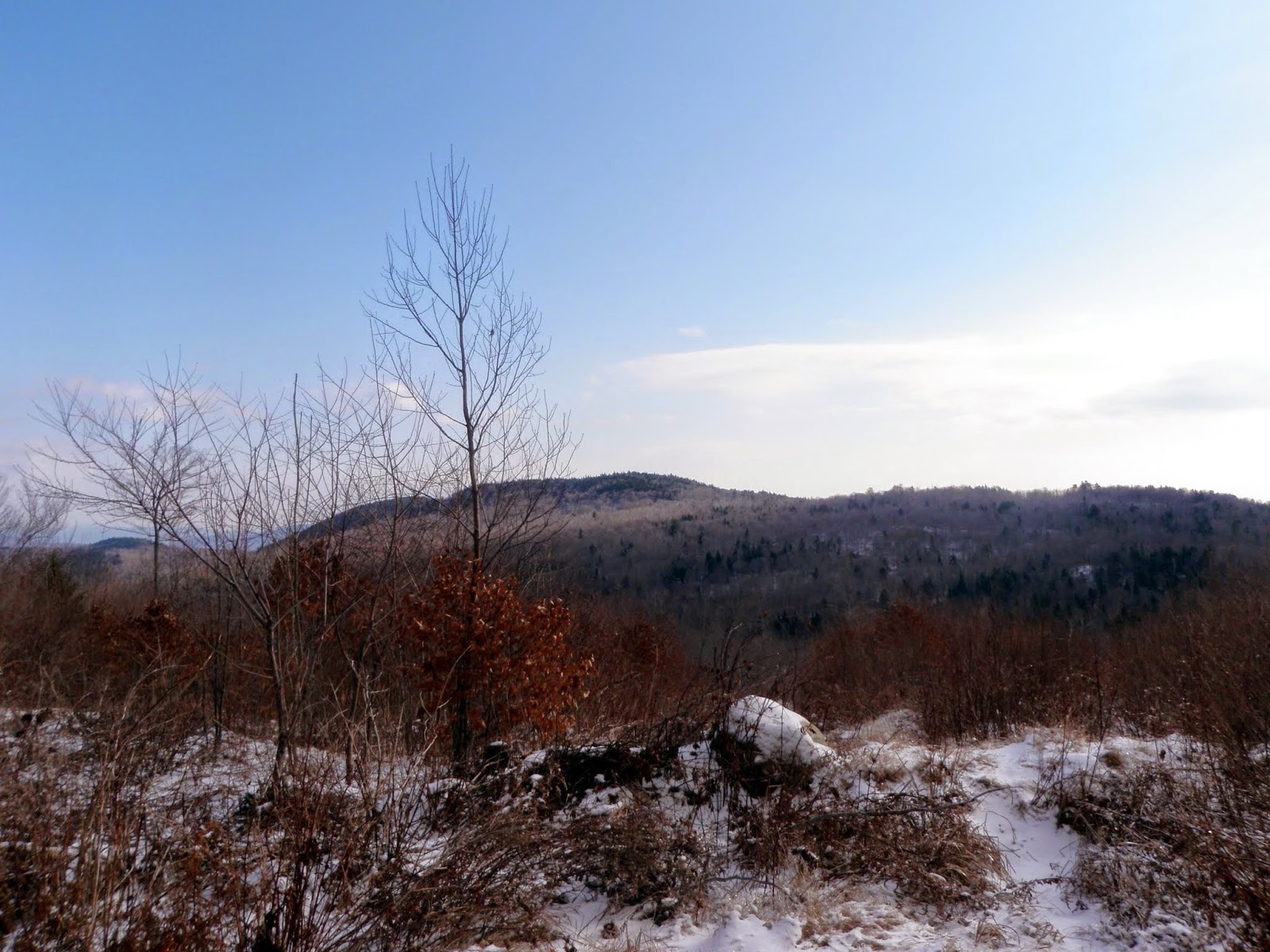 Copple Crown Mountain is located in both Brookfield and New Durham, New Hampshire. It is also the highest point in Brookfield, and the western slope is the highest point in New Durham (which we did not do today because of the snow depths off trail). There also used to be a ski area on Copple Crown but it closed down roughly forty years ago. There are views from several viewpoint areas on both summits.